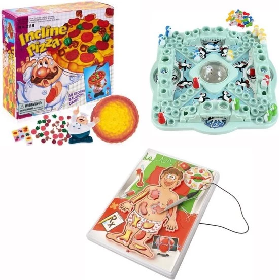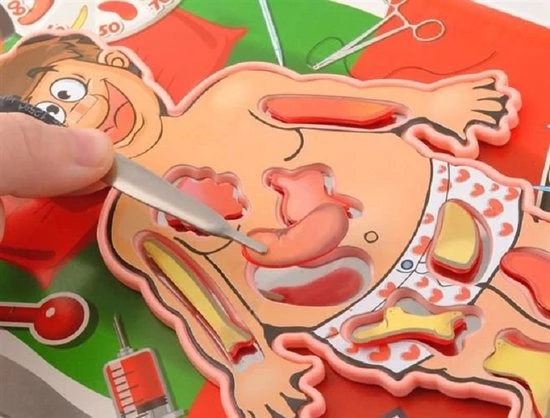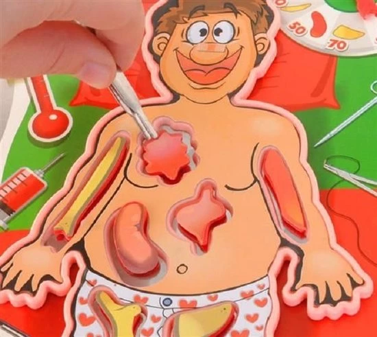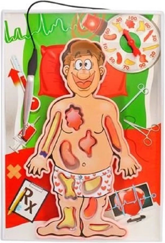 De gekke dokter, een varriatie op het bekende spel Dr Bibber, met stalen zenuwen halen jullie 1 voor 1 de organen eruit, maar…………………pas op. Wanneer de patient trilt ben je af.