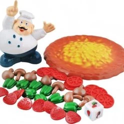 Een pizza balansspel, elke gooi met de dobbelsteen bepaald wat er op de pizza gelegd wordt. De spanning stijgt, wie zorgt ervoor dat de pizza zijn balans veliest en alle ingredienten van de pizza glijden?