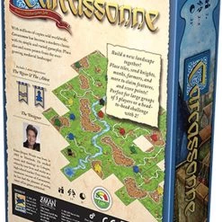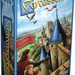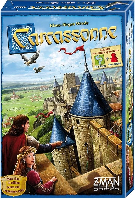 Carcassonne is a tile-placement game in which the players draw and place a tile with a piece of southern French landscape on it. The tile might feature a city, a road, a cloister, grassland or some combination thereof, and it must be placed adjacent to tiles that have already been played, in such a way that cities are connected to cities, roads to roads, etcetera. Having placed a tile, the player can then decide to place one of his meeples on one of the areas on it: on the city as a knight, on the road as a robber, on a cloister as a monk, or on the grass as a farmer. When that area is complete, that meeple scores points for its owner.