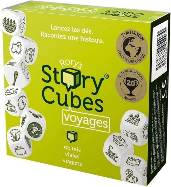 Met de Rory’s Story Cubes Voyages creëer je oneindig veel verhalen vol heldhaftige avonturen. De dobbelstenen bevatten afbeeldingen die te maken hebben met reizen en avontuur. Rol de dobbelstenen en verzin verhalen aan de hand van de negen zichtbare afbeeldingen. Begin je verhaal met ‘In een land hier ver vandaan..’ en start je avontuurlijke reis.