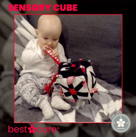 De zintuiglijke kubus is een mega leuk speeltje dat uw baby met plezier zal vergezellen op al zijn avonturen!