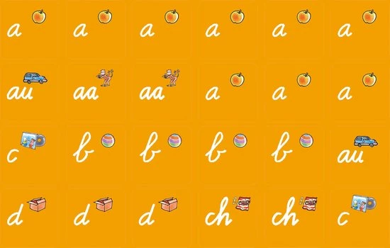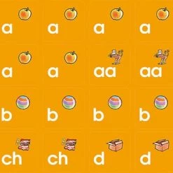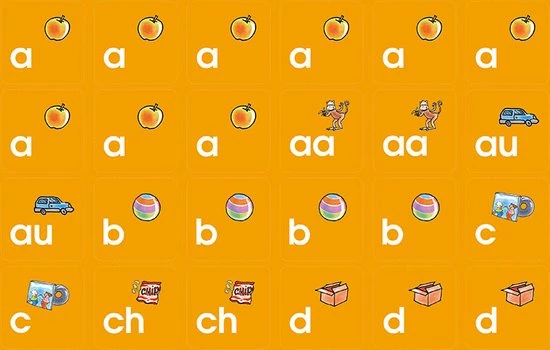 144 letterkaartjes met de 26 letters van ons alfabet en 17 dubbelklanken en klankcombinaties.
