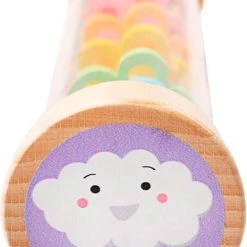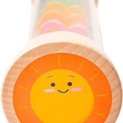Bigjigs houten rainmaker regenmaker. Draai deze houten regenmaker om en zie de kraaltjes zachtjes naar beneden vallen. De zachte regendruppelgeluiden geven de kleine een fijn gevoel. De verdiepingen in de regenmaker hebben vrolijke kleuren net als de kralen. De zijkanten van de regenmaker zijn bedrukt met een wolkje en een zonnetje . De regenmaker is ook te gebruiken als een rammelaar. Geschikt vanaf 1 jaar.