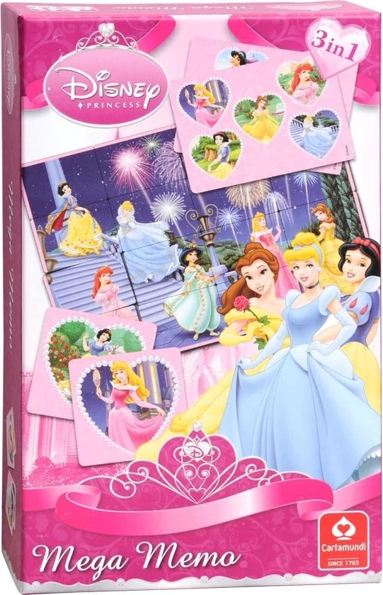 Beleef uren spelplezier met je lievelingsprinsessen! Verzamel zoveel mogelijk paren in het memospel, leg zo snel mogelijk afbeeldingen na in het mega memospel of maak een leuke puzzel. Geschikt voor 1 tot 4 spelers van 3 tot 8 jaar.