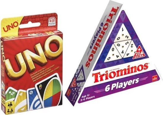 Deze spelvoordeelset bestaat uit Uno – Kaartspel & Triominos 6 player. Je zult urenlang speelplezier hebben door deze twee gave spellen!