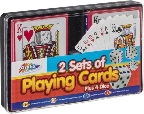 Set van 2 pak speelkaarten en 4 dobbelstenen