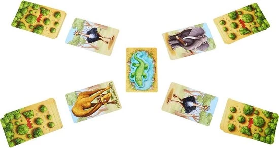 Bevat: 32 dierkaarten (4 x 8 verschillende dieren), 1 meerkaart, 1 krokodil, 1 handleiding.