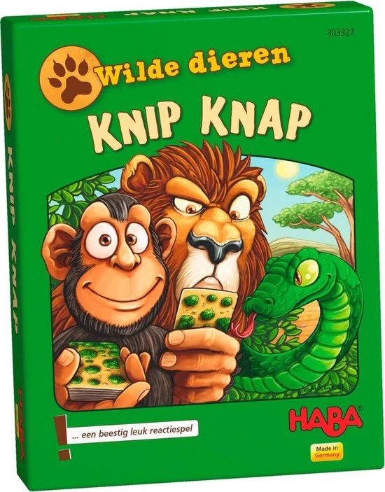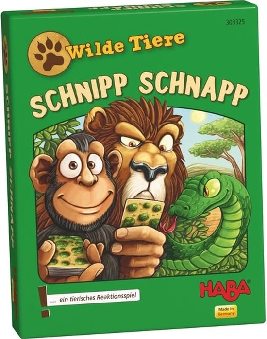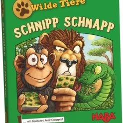 Wilde Dieren van het Duitse merk Haba is een kaartspel. De wilde dieren ontmoeten elkaar bij het meer. Maar daar mag steeds maar ??n dier van iedere soort staan. Als er twee dezelfde dieren te zien zijn, moet je snel zijn en je hand op de krokodil in het meer leggen! De snelste speler krijgt alle dieren die zich op dat moment aan het meer bevinden. Wie lukt het om aan het einde alle dierkaarten in zijn bezit te hebben?