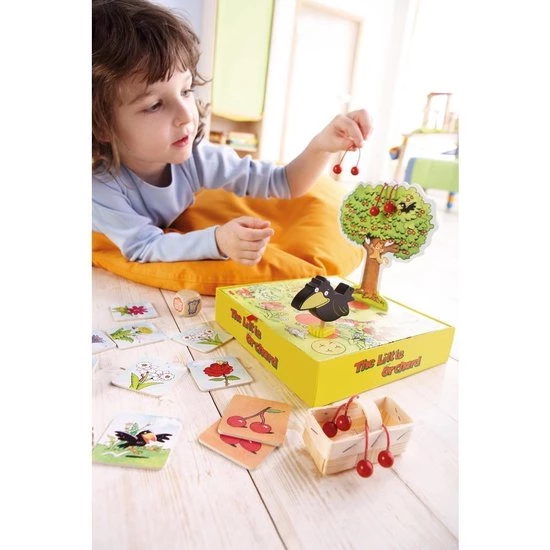 Jij wil sappige kersen plukken, maar de brutale raaf sluipt er ook op af. Wie kan de vruchten het snelst oogsten?