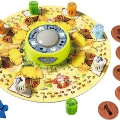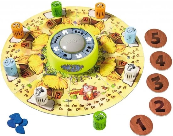 Inhoud: 1 bongo-buzzer, 1 speelbord, 5 scoreplaatjes, 5 waterdruppels, 1 vel met stickers, 1 handleiding met spelregels.