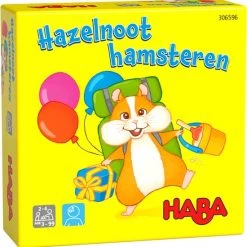 Inhoud: 1 speelfiguur, 24 voorwerpkaartjes, 12 hazelnootkaartjes, 1 dobbelsteen, 1 handleiding.