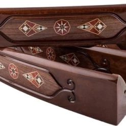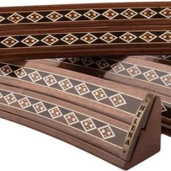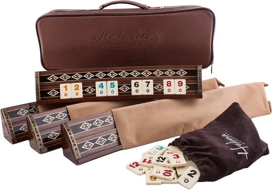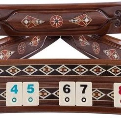 Deze handgemaakte rummy set is gemaakt van beukenhout. De ovaal gevormde planken geven u een prettige ervaring in het spelen van dit eeuwenoude spel. De steentjes zijn gemaakt van melamine.