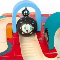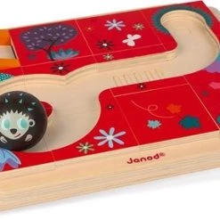Een samen te stellen parcours dankzij het mobiele blad en het 12-delige recto-versocircuit. Ontwikkelt de hand-oogco?rdinatie en de fijne motoriek dankzij de grote bal in de vorm van een egel die zich moet verplaatsen op de weg. De onderdelen zijn afneembaar en kunnen eveneens worden gebruikt buiten het blad.