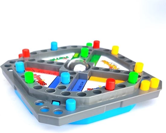 dit spel kun je spelen met 2 of 4 personen. Ieder persoon heeft een eigen kleur, waarmee hij/zij het bord rondgaat doormiddel van het dobbelen van de dobbelsteen. Dit spel is superleuk om thuis of bij vrienden te doen. Ben jij de eerste die alle pionnen in de vakken weet te krijgen?