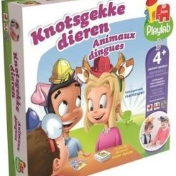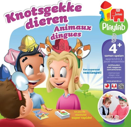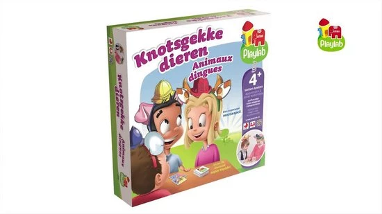 Knotsgekke Dierenmemo is een leuke memo-variant! Zet de diadeem op en kies een paar dierenoren en een kleur. Per beurt draait iemand een kaart om van de stapel. Is het jouw dier of kleur? Maak dan zo snel mogelijk het geluid van het dier dat op de kaart staat! Als de kaartjes op zijn, telt iedereen zijn gewonnen kaarten. Degene met de meeste kaartjes, wint!