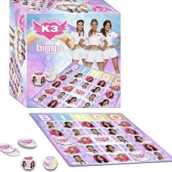 - Bevat 6 bingokaarten, 1 dobbelsteen met letters in kleur, 1 dobbelsteen met K3 foto’s en 60 afdekplaatjes