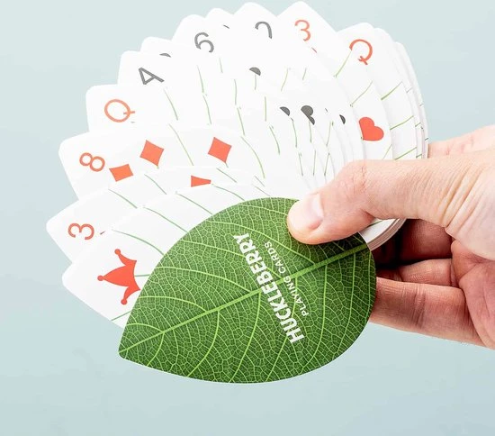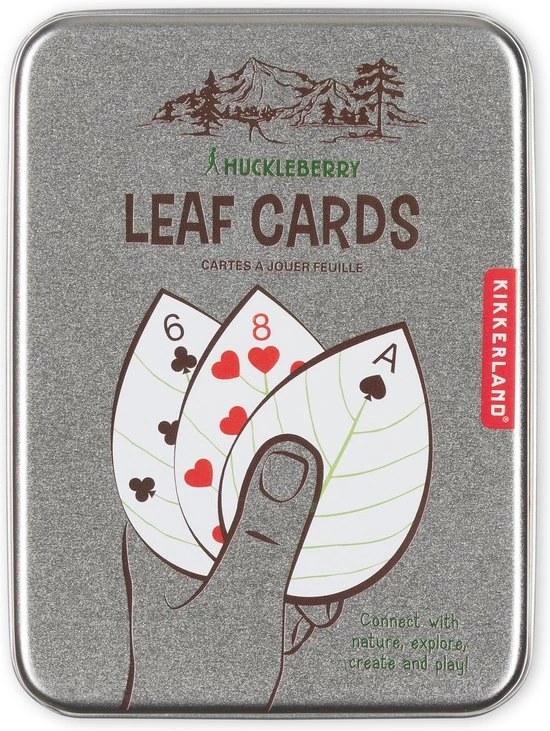 De Leaf Cards van Huckleberry zijn speelkaarten in een leuk natuur thema. De kaarten zijn in de vorm van boombladeren. De set speelkaarten is compleet met jokers en worden geleverd in een handig meeneem blik.