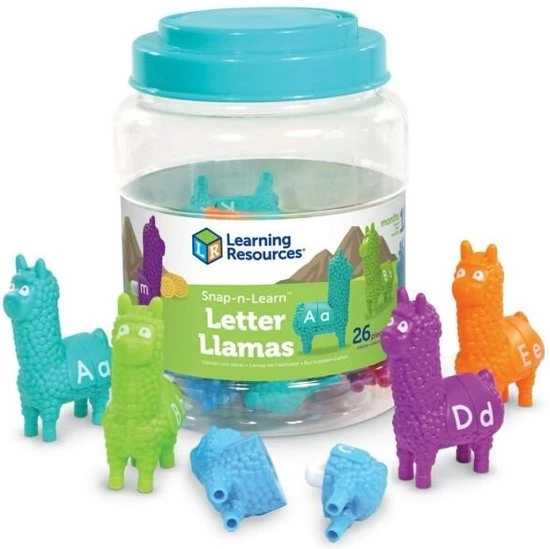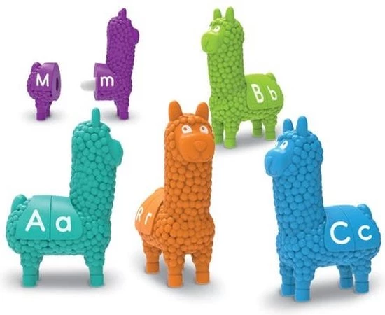 Deze schattige lama’s staan klaar voor een lama-letterleertraject! Elke keer dat kinderen de Snap-n-Learn⢠letterlamaās mixen & matchen, leren ze letters en kleuren bij elkaar te zoeken. Alle 13 lama’s hebben aan elke kant van het zadel een hoofdletter en een kleine letter. De lama’s zijn bedoeld voor kleine handjes en zijn gemakkelijk los te halen en weer aan elkaar te klikken. Hierdoor kunnen peuters sterke handen, coƶrdinatie en andere belangrijke fijnmotorische vaardigheden ontwikkelen.