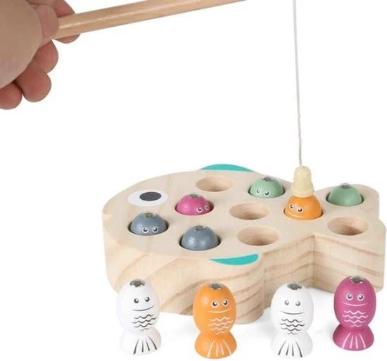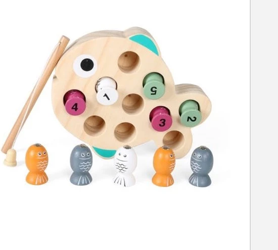 Dit eenvoudige en schattige visspel voor kinderen met magnetische staven. Perfect voor familiespelavonden. Stimuleert de oog-handcoördinatie. De vis heeft daaronder nummers, waardoor je verschillende spellen kunt spelen. Verzamel kleuren, kijk wie de meeste nummers kan krijgen of speel als geheugenspel
