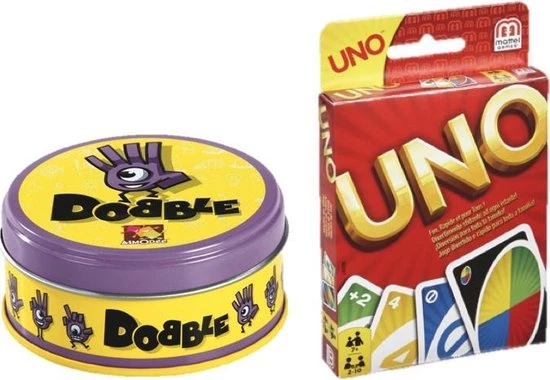 Deze voordeelset bestaat uit Dobble Classic – Kaartspel & Uno – Kaartspel. Je zult urenlang speelplezier hebben door deze twee gave spellen!