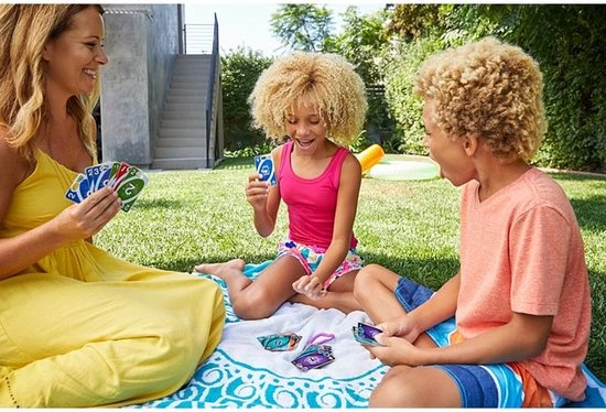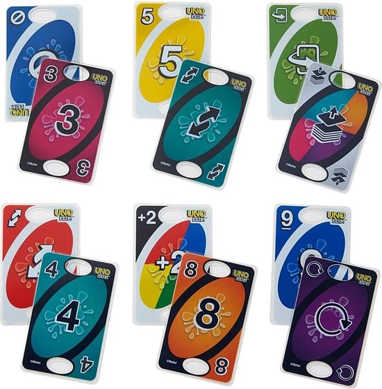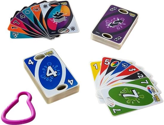 UNO Flip Splash combineert het traditionele UNO-kaartspel met de extra uitdagingen van UNO Flip! een leuk kaartspel voor strand- of zwembadspellen.