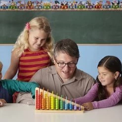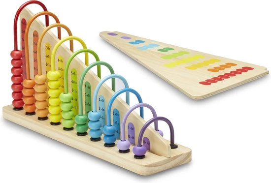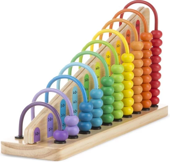 Dit klassieke speelgoed, dat ideaal is voor in de klas of op de speelkamer, leert kinderen op veel manieren nummers, kleuren en patronen te verkennen! Schuif de twee dubbelzijdige houten plankjes in de basis en moedig de kinderen aan om de sommen op te lossen door het juiste aantal kralen te plaatsen, of de kleurpatronen te volgen die op de andere kant van de plankjes staan. Dit telraam is een kleurrijke, educatieve krachtpatser!