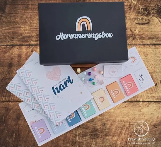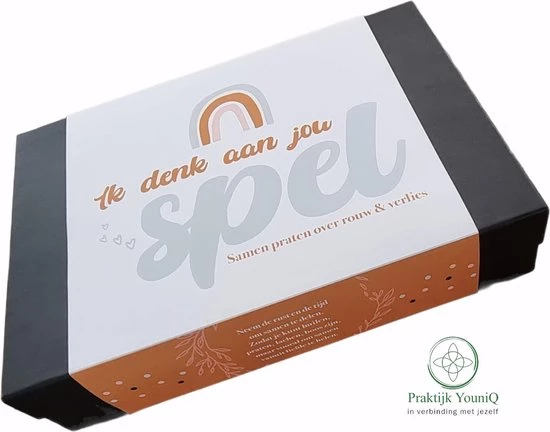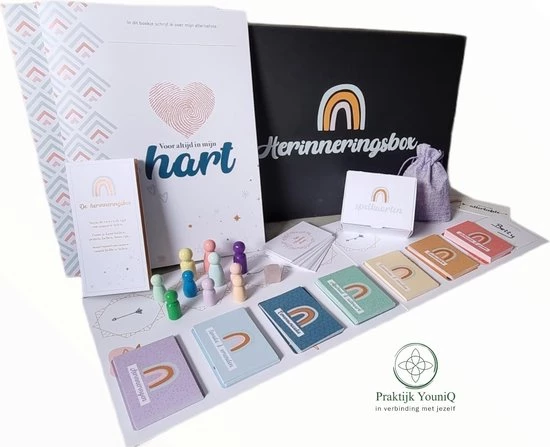 Rouwen doe je op een eigen unieke wijze. Maar voor jong en oud geldt hetzelfde. Als je je hart niet laat spreken, dan draag je het verdriet en de pijn alleen. Met dit spel cre?er je de ruimte om met elkaar (kinderen vanaf 6 jaar) te communiceren over jullie dierbare die zo gemist wordt. Daarbij kun je in deze prachtige box wat fysieke herinneringen bewaren die belangrijk zijn voor de kinderen of voor het gezin/naasten. Tevens kun je dit spel uitstekend spelen als volwassene.
