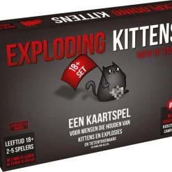 Nederlandstalige versie van het populaire kaartspel Exploding Kittens. Exploding Kittens is een fantastisch kaartspel voor mensen die van katten, explosies, laserstralen en soms ook van geiten houden. Dit tactische spel is een variant van Russisch roulette, maar dan met exploderende kittens. Je neemt kaarten van de stapel totdat je ??n van de gevreesde exploderende kittens trekt. Dan heb je meteen verloren. Met alle andere kaarten kun je jezelf verdedigen, aanvallen, een beurt overslaan of de katten afleiden.