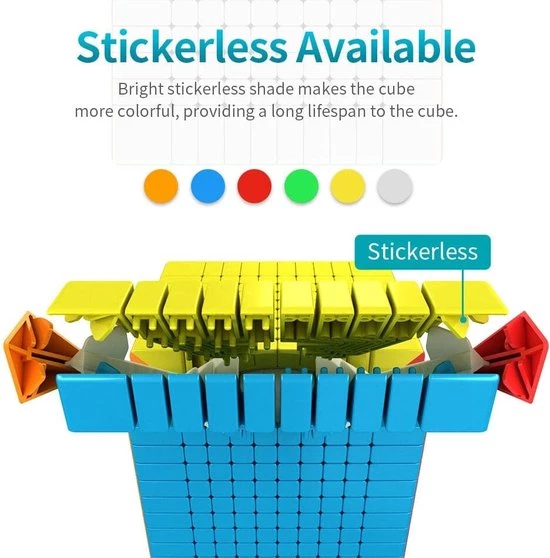 De kubus bevat geen stickers maar gekleurd plastic wat heel lang mooi blijft en duurzaam is.