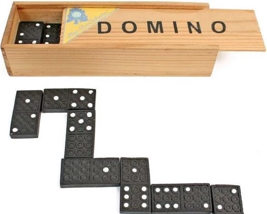 | Verpakkingsinhoud | -, houten, kistje, met, schuifdeksel<br, />-, 28, kunststof, dominostenen<br, />-, handleiding |