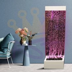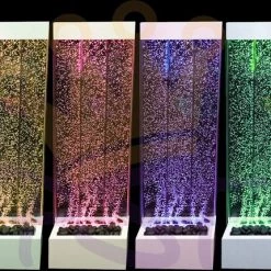 Een witmetalen basis ondersteunt dit 4 voet, 4 secties acryl bubbelpaneel, terwijl accessoire kiezelstenen een authentiek, rustiek gevoel geven als aanvulling op onze hightech LED-verlichting.