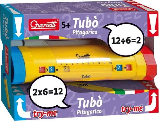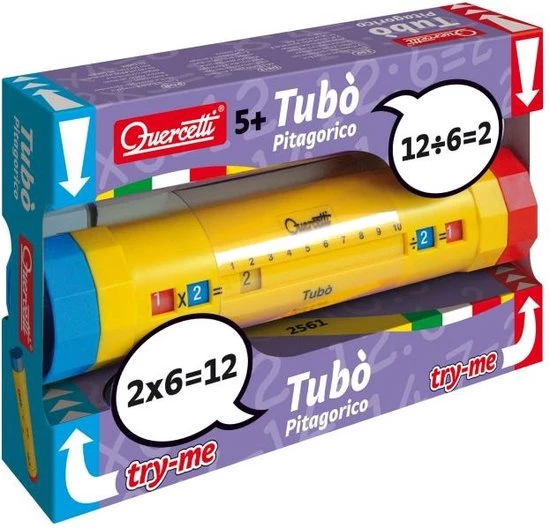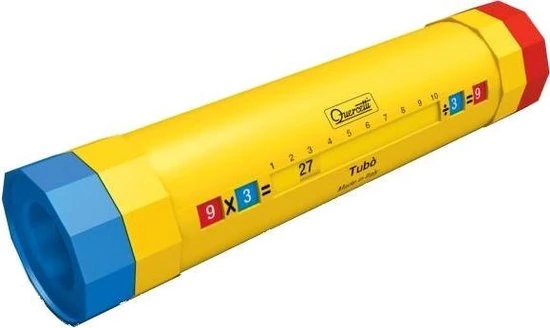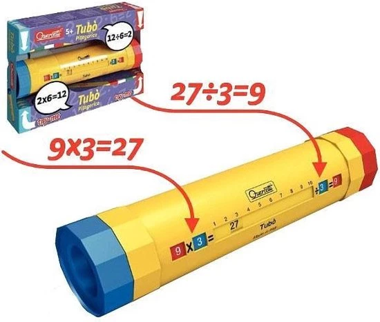 Met de Quercetti Tub? is het echt gemakkelijk en leuk om de tafels van 1 t/m 10 te leren. Draai aan de twee gekleurde knoppen aan de uiteindes en de resultaten van de rekensom zal verschijnen in de vensters op de buis. Geschikt voor kinderen vanaf 5 jaar.