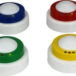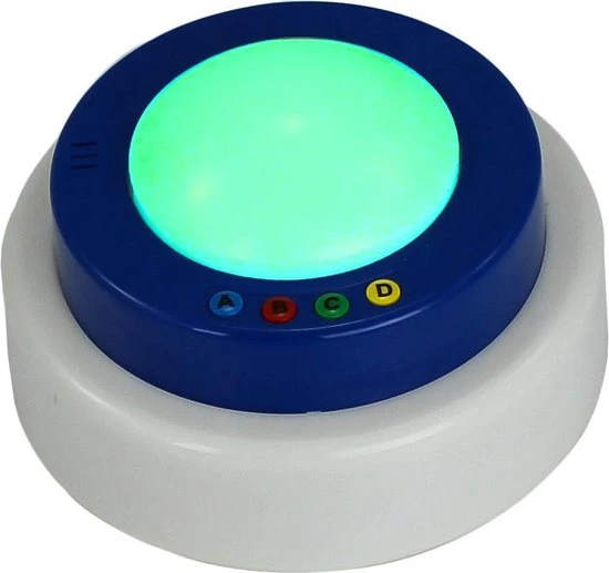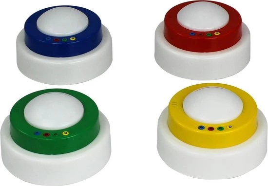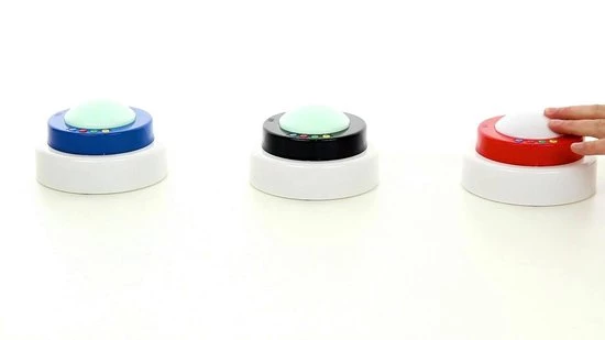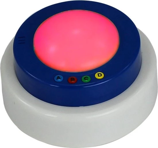 Druk als eerste en je buzzer gaat helder wit knipperen en maakt een geluid. De overige knoppen worden uitgeschakeld!