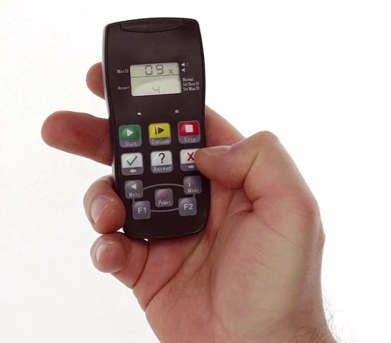 Beoordeel de vraag met de afstandsbediening. Bij een goed antwoord wordt een geluid afgespeeld en gaat de knop groen knipperen. Bij een fout antwoord wordt de knop rood en wordt een geluid afgespeeld. Je kunt nu via de afstandsbediening doorgaan met de vraag waarbij degene die het foute antwoord gaf is uitgeschakeld.
