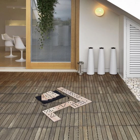 Met deze XXL domino set maak je je kinderen helemaal blij. Het spel is trouwens niet alleen leuk voor de jongsten, maar is een feest voor heel jong en oud en is leuk voor in de tuin, voor in het park of voor op het terras. Omdat de ogen van de dominostenen goed leesbaar zijn, kunnen oma en opa ook met gemak de juiste steentjes vinden. Bij de levering is een zakje inbegrepen waar je het houten dominospel in op kunt bergen. Met deze dominosteentjes worden vakanties of pauzes tijdens wandelingen door de natuur nooit saai. Een leuk buitenspel voor jong en oud!