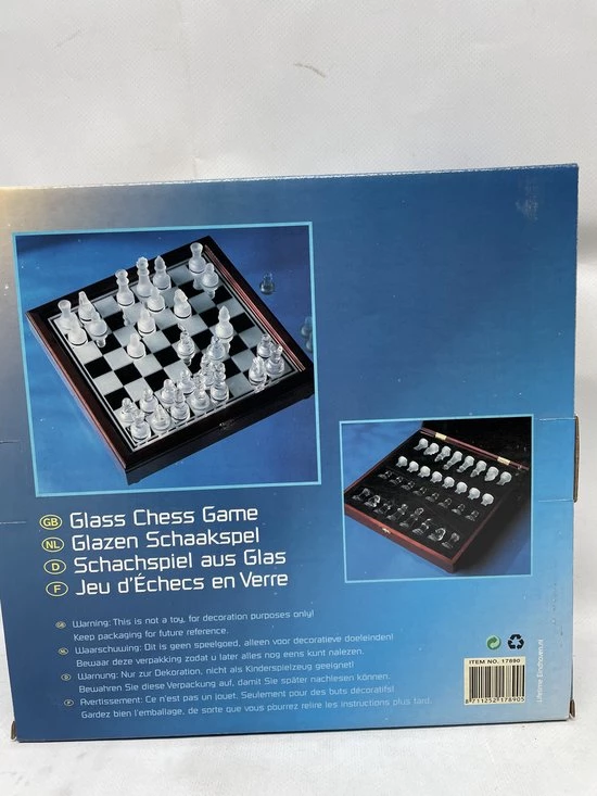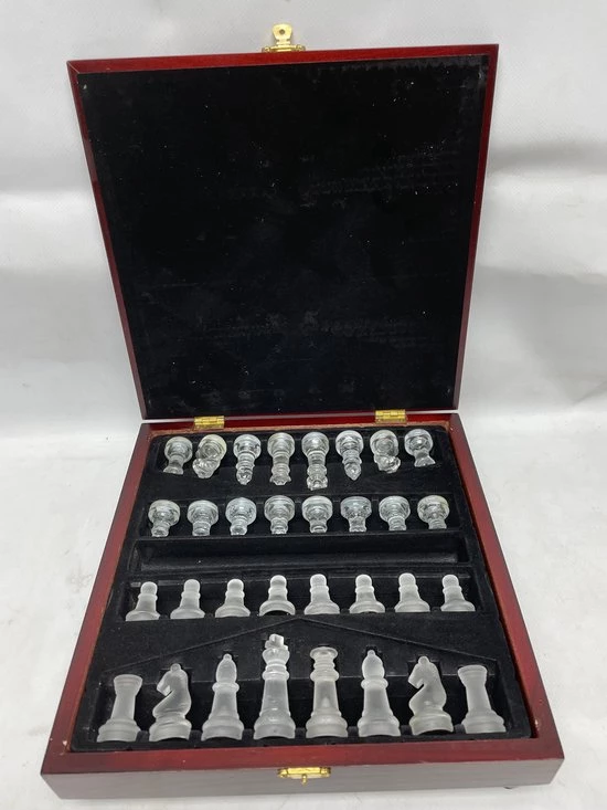 | Verpakkingsinhoud | Schaakspel, in, kistje, met, glazen, stukken |