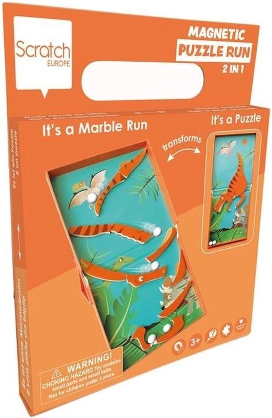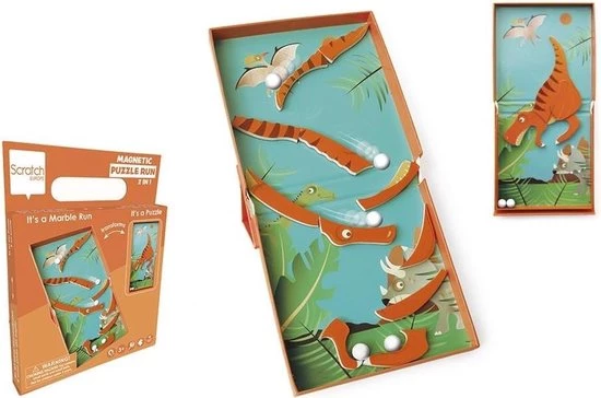 Met deze leuke magnetische puzzel beleef je uren speelplezier! Puzzel een dino of transformeer de puzzel in een uitdagende knikkerbaan. De puzzelstukken zijn magnetisch, zodat deze goed blijven liggen. Samen met de knikkers cre?er jij je eigen spel!
