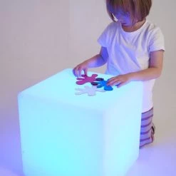 Deze ultrasterke verlichte holle plastic kubuslamp zorgt voor een esthetisch aangenaam sfeeropwekkend licht en kan in elke omgeving of zintuiglijke ruimte worden geplaatst voor sfeerverlichting. Het is een uitstekende stoel, ideaal voor een sensorische hoek of receptie. Het stevige maar lichtgewicht ontwerp is mooi en praktisch, gemakkelijk binnen of buiten te verplaatsen, eenvoudig schoon te maken en ideaal voor individuele of groepsgerichte activiteiten. Daarnaast ook superleuk voor de kinderkamer.