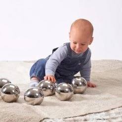 Deze 6 reflecterende spiegelbollen zijn robuust gemaakt van roestvrij staal en zien er identiek uit, maar hebben individuele kenmerken, zodat ze zich allemaal anders gedragen. De ballen kunnen wiebelen als ze worden gerold, twee van de ballen zijn stil, maar een ervan rolt niet in een rechte lijn, andere hebben een inhoud die anders aanvoelt als ze worden gedraaid, rondgedraaid of geschud, en sommige ballen maken een andere shaker of ratelende geluiden.