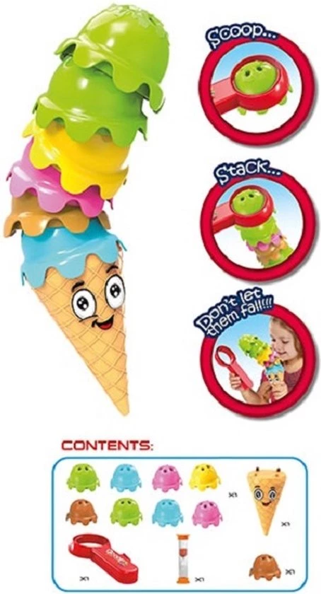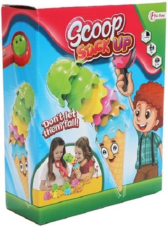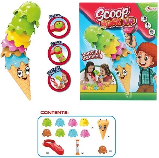 Met dit superleuke nieuwe gezeldschapsspel IJsbollen stapelen, kun je je uren vermaken! Daag elkaar uit!!! En wie de hoogste stapel ijsbollen kan maken die heeft gewonnen.