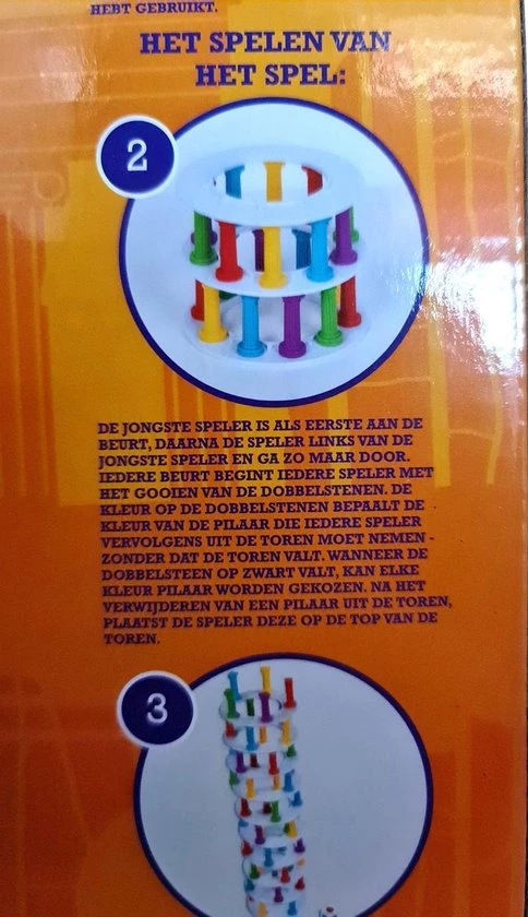 De jongste speler is als eerste aan de beurt, daarna de speler links van de jongste speler en ga zo maar door. Iedere beurt begint iedere speler met het gooien van de dobbelstenen. De kleur op de dobbelstenen bepaalt de kleur van de pilaar die iedere speler vervolgens uit de toren moet nemen zonder dat de toren valt. Wanneer de dobbelsteen op zwart valt kan elke kleur pilaar worden gekozen. Na het verwijderen van een pilaar uit de toren plaatst de speler deze op de top van de toren.