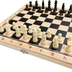 Complete houten 3 in 1 set met speelstukken voor: Schaken, Dammen en Backgammon. Het schaakbord is eenvoudig mee te nemen door het compacte formaat, opvouwbaarheid en omdat de onderdelen in het bord zelf opgeborgen kunnen worden. Met dit schaakbord is het mogelijk om overal uw favoriete spel mee te nemen.