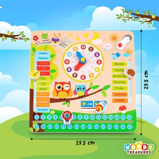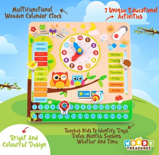 De leerklok voor kinderen die leren klokkijken is speciaal ontwikkeld om een ??leuke manier te bieden om eindeloos plezier te hebben terwijl ze de fijne motoriek verbeteren, kinderen leren klokkijken, redeneren en creativiteit stimuleren en fantastische continue beweging bieden om kinderen het soort van belangrijk speciaal spel dat opvoedt – terwijl ze het fantastisch hebben! De houten educatieve onderwijsklok, bevat een kalender met dagen, datums en maanden van het jaar