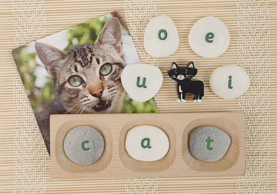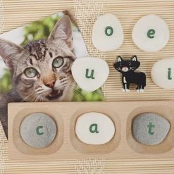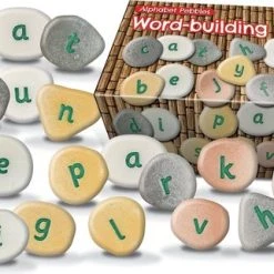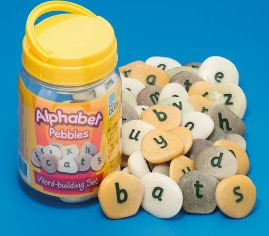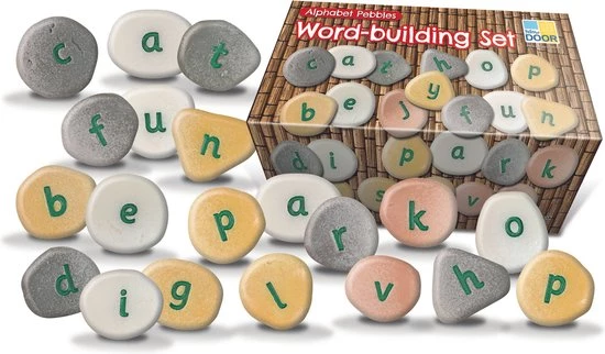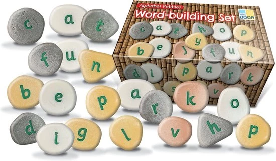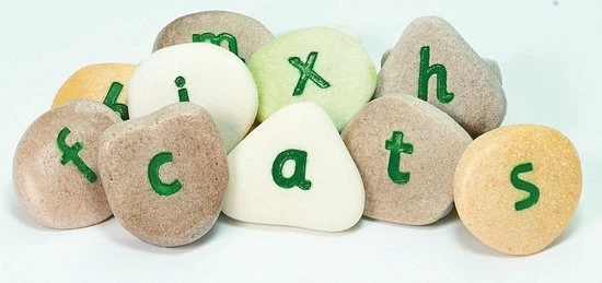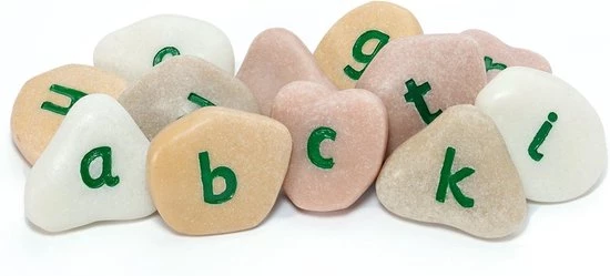 Set van 50 alfabet stenen uit hars/steen mix in script letters. Hierdoor kan je de stenen verstoppen in zand, water, gras, aarde,… maar ze ook invriezen in water! Op deze manier wordt het leren van de letters nog veel leuker. Ook is het mogelijk om met deze set woorden te maken. De set bevat volgende letters: 3x a, o, u, i, e – 2x b, c, d, f, g, h, l, m, n, p, r, s, t, y – 1x j, k, q, v, w, x, z.